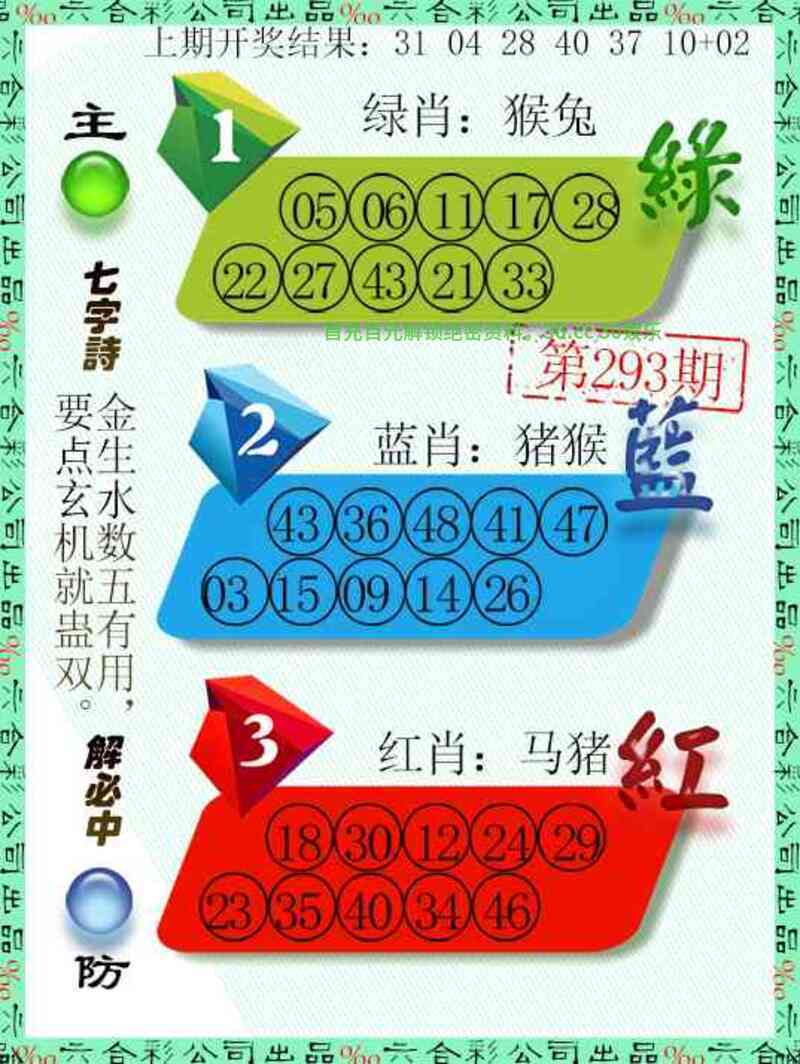 293期:双波🏹『蓝波-绿波』开:羊47准 |